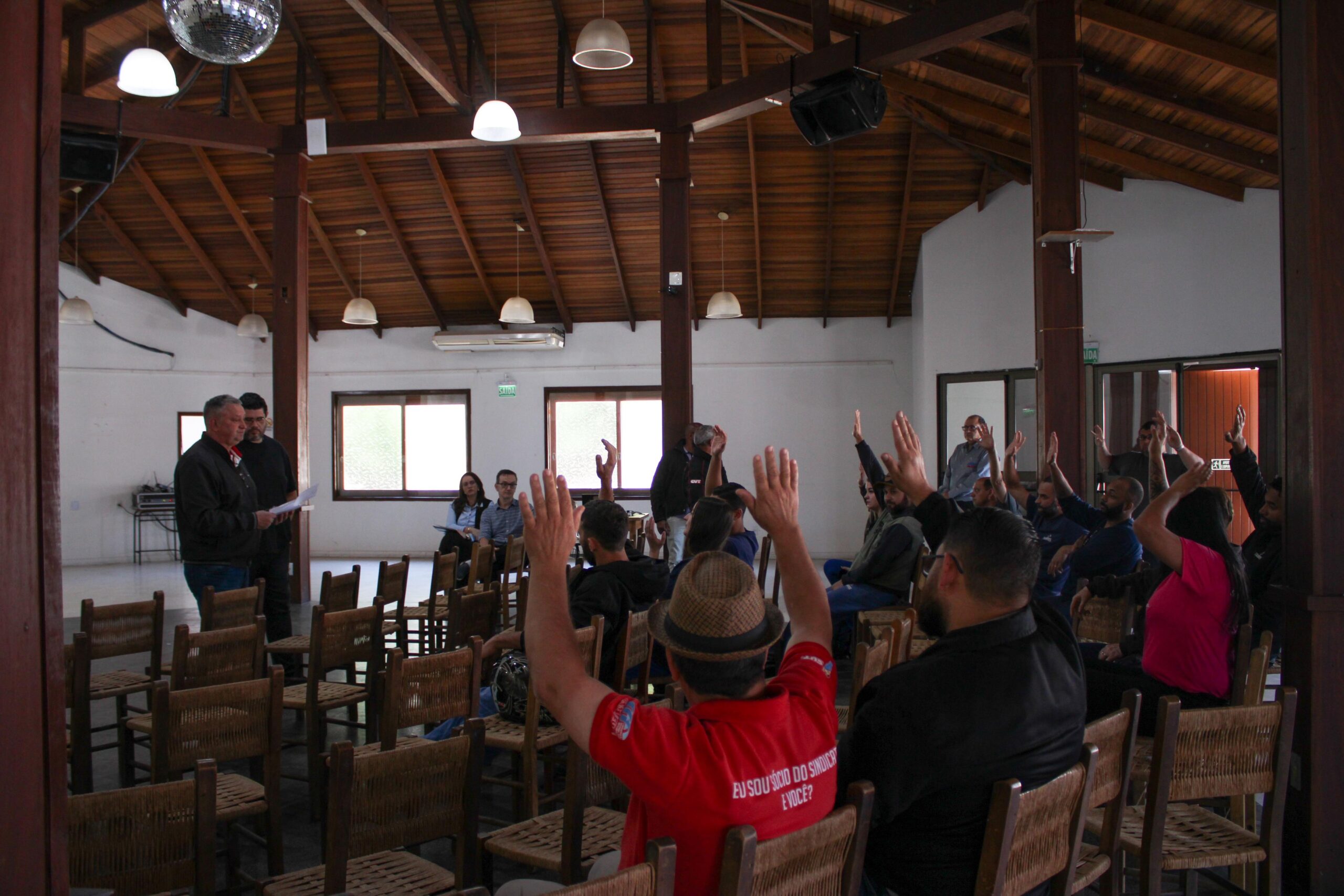 Na abertura das assembleias, o presidente do Sindicato, Valmir Lodi recordou a recusa da empresa em pagar o reajuste tão logo foi aprovado pela categoria, em 14 de agosto. A justificativa da Taurus é o impacto do tarifaço, imposto pelo presidente dos Estados Unidos. “Desde o dia 21 de agosto, iniciamos a negociação com a Taurus e não foi fácil, a empresa não queria pagar nada. Porém, não abrimos mão do reajuste para todos os trabalhadores da nossa base e chegamos nesta proposta possível de apresentar para vocês na manhã de hoje”, contou Valmir.