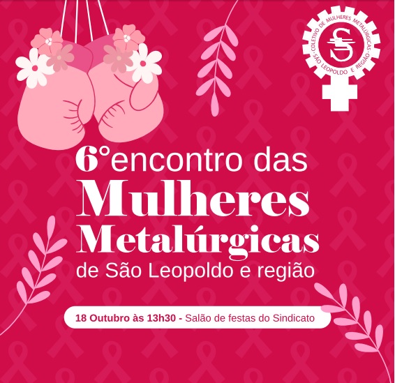 O Sindicato dos Trabalhadores Metalúrgicos de São Leopoldo e Região (STIMMMESL) convida todas as trabalhadoras da base para participar do 6º Encontro das Mulheres do STIMMMESL, no sábado (18), às 13h30 no Salão de Festas do Sindicato (Av. David Canabarro, 106, Morro do Espelho, São Leopoldo).